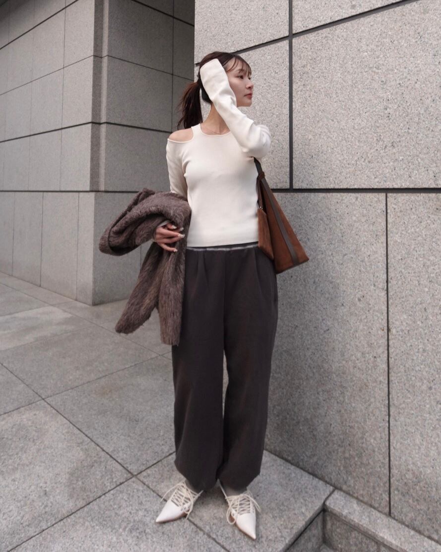 同じ生地を使用した、boat neck line sweatとセットで着るのもおすすめです。