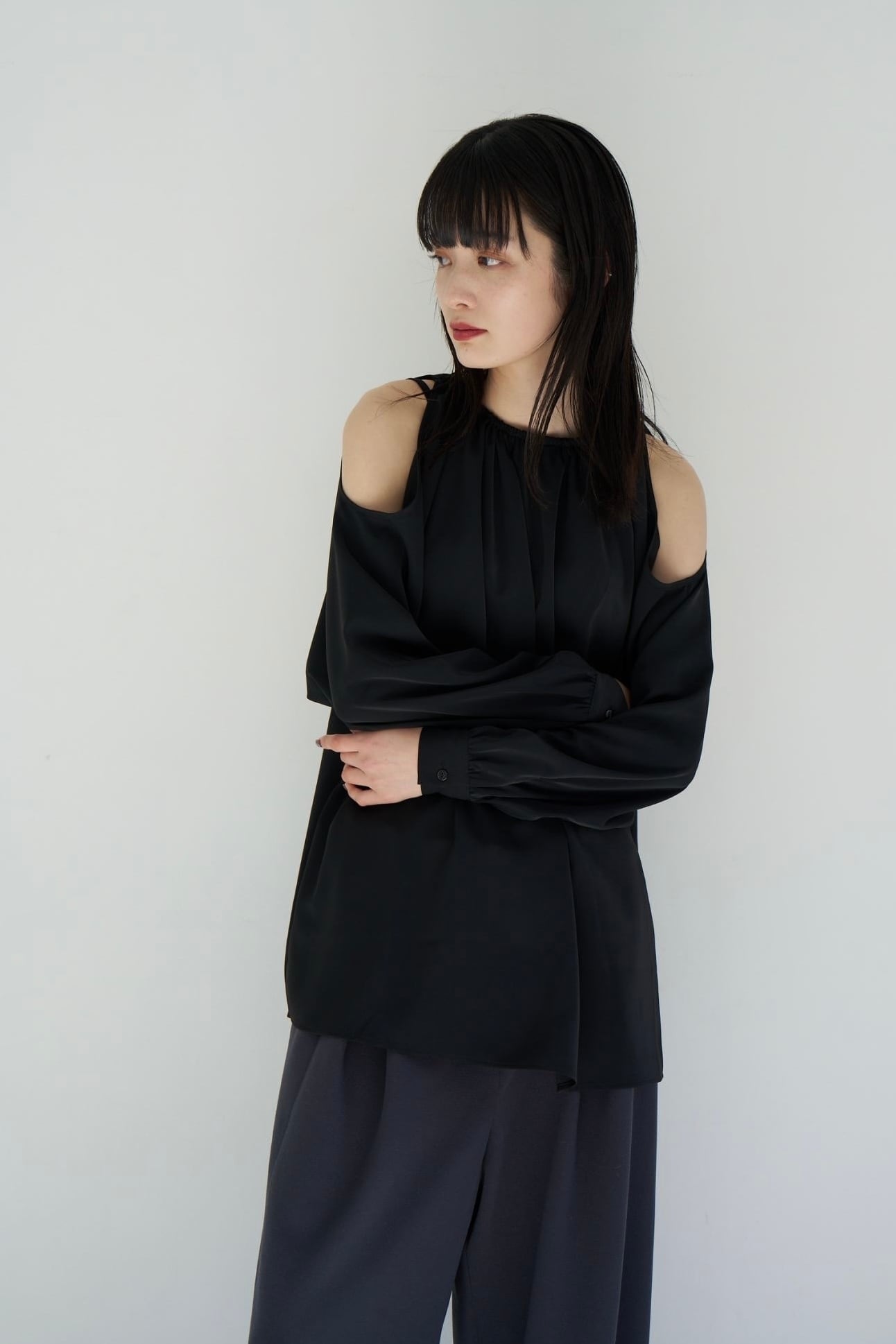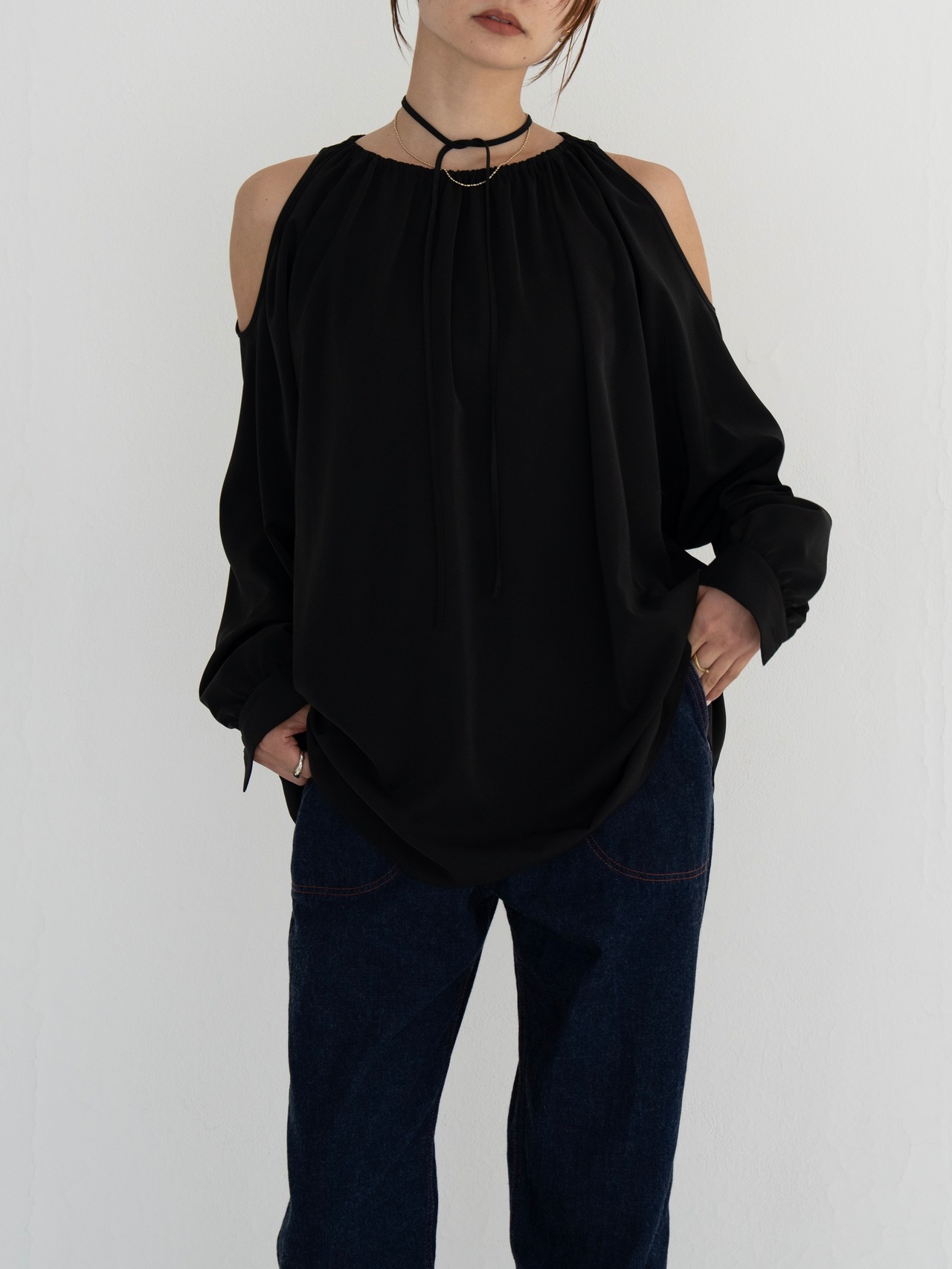 2way gather blouse【black】