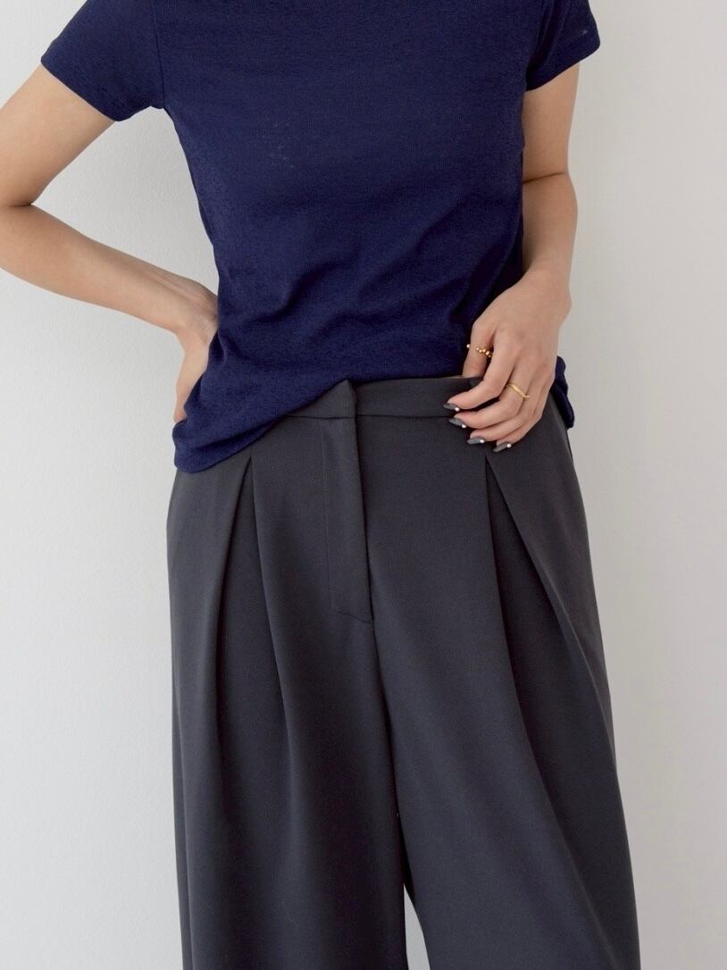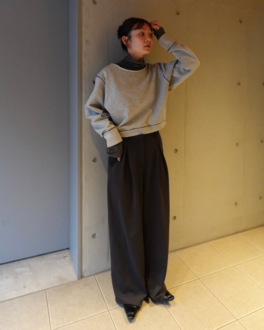 伸縮性のある柔らかい生地感でシワになりにくく、