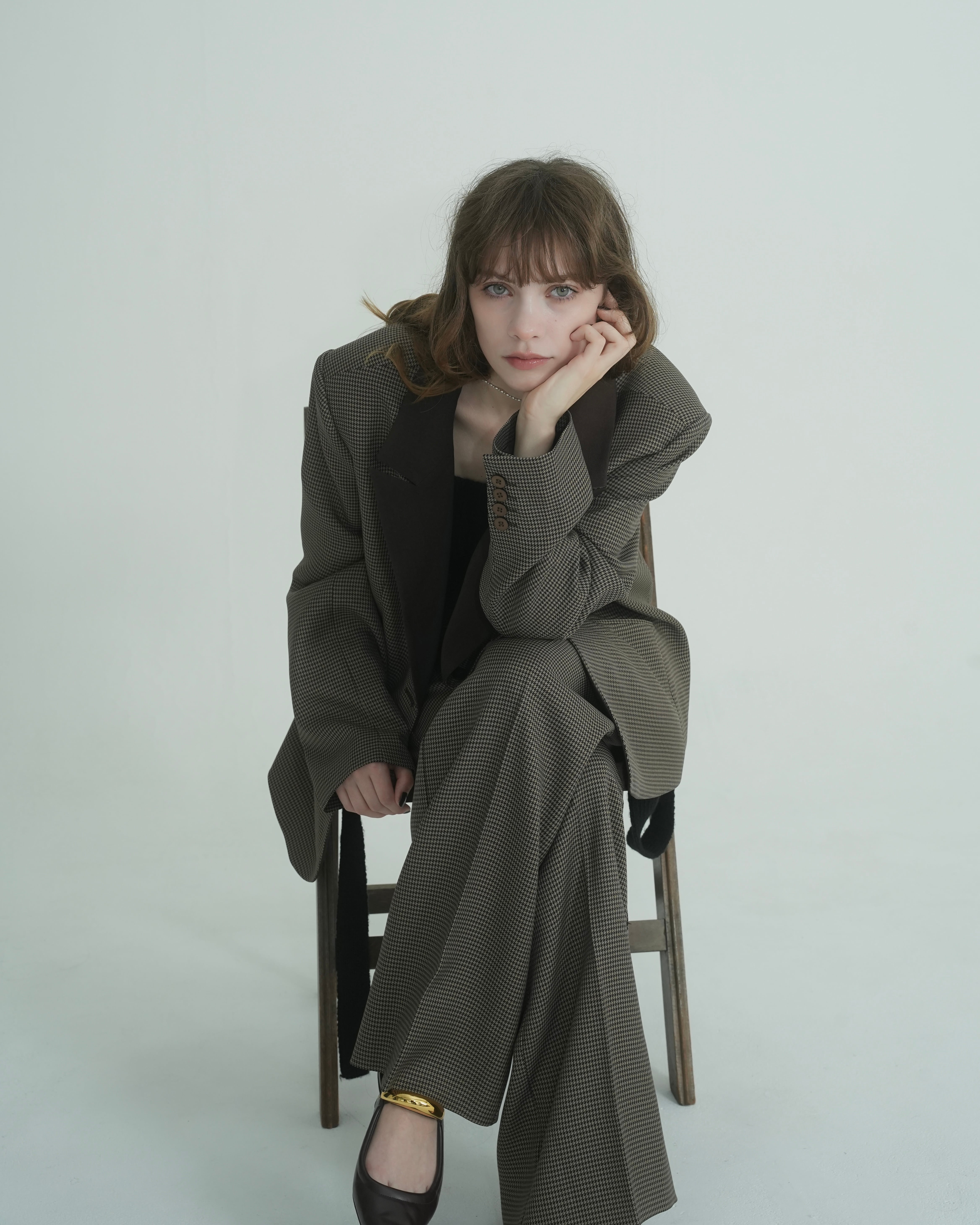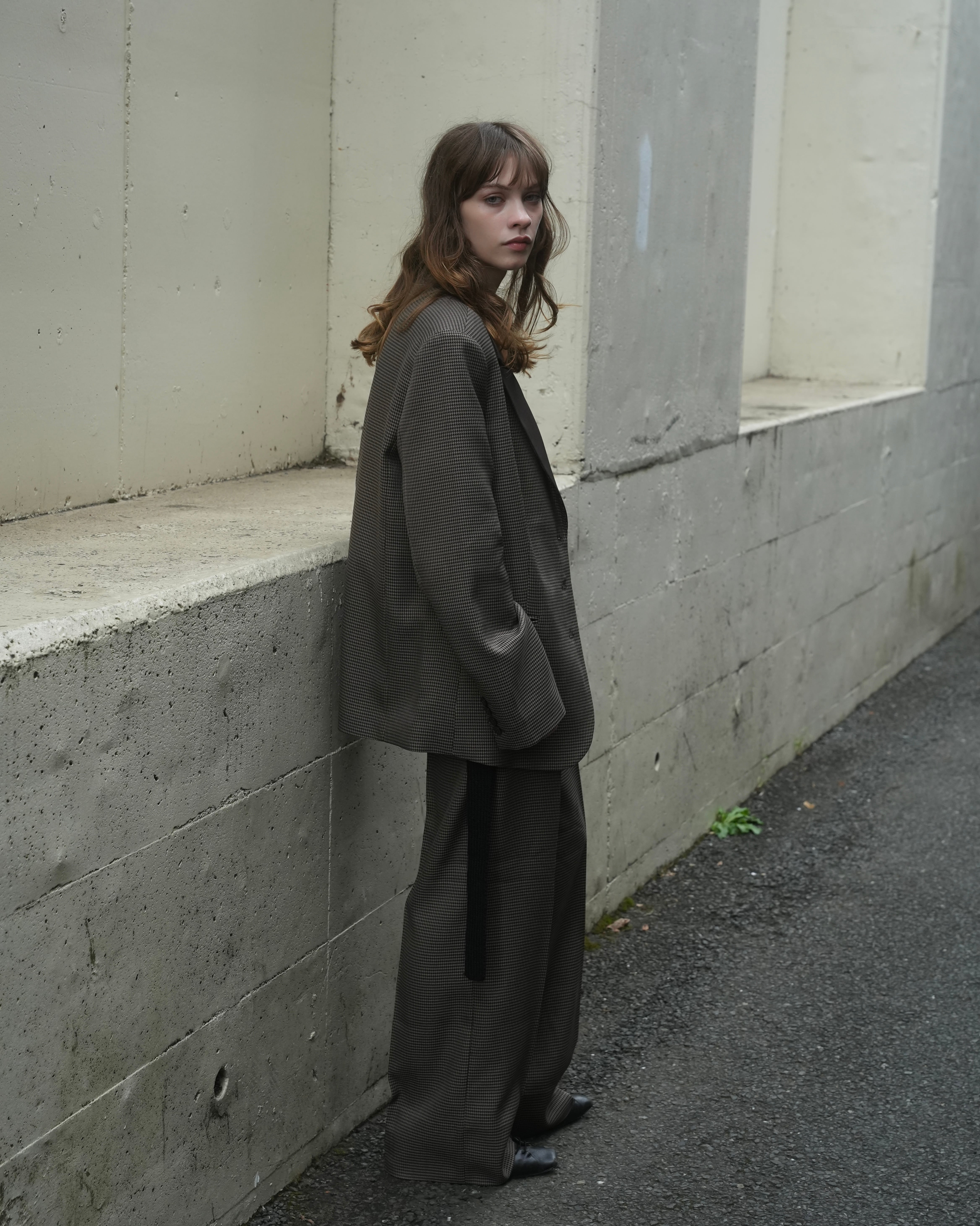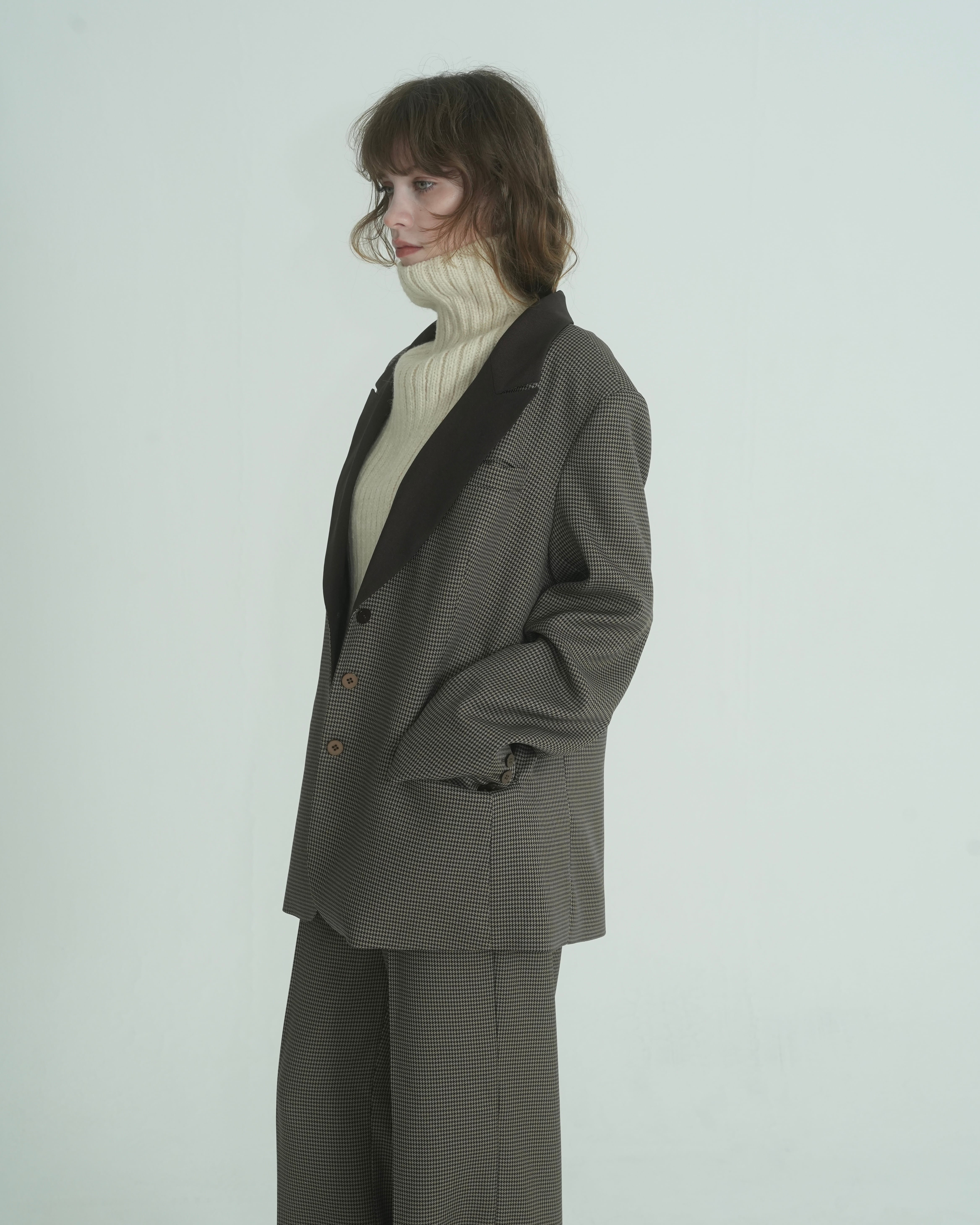 細かな千鳥柄が映えるオーバーサイズジャケット。