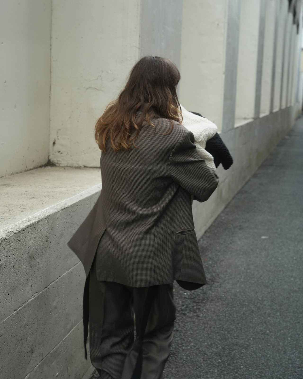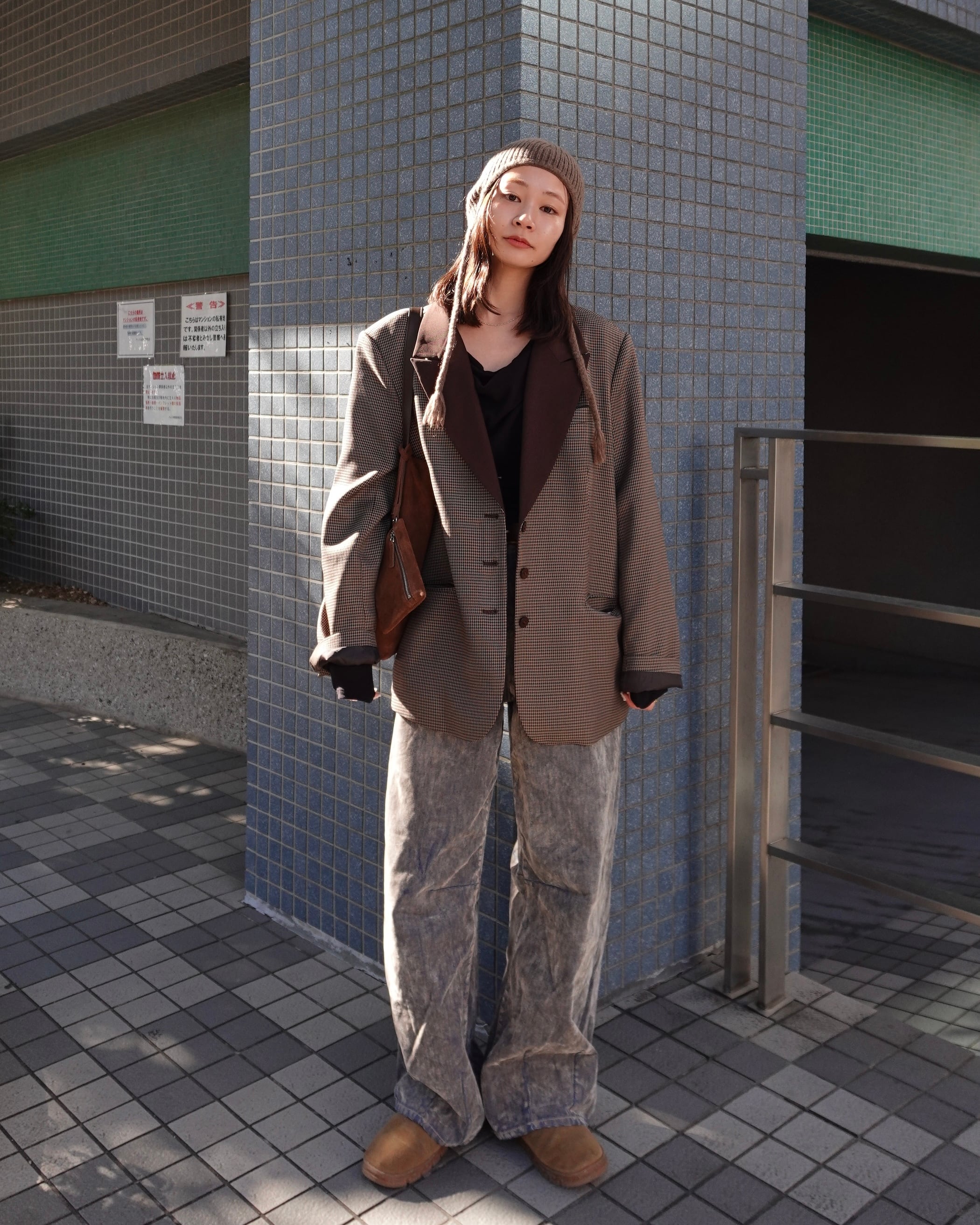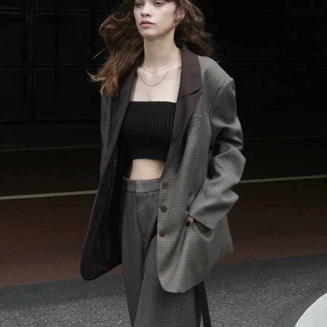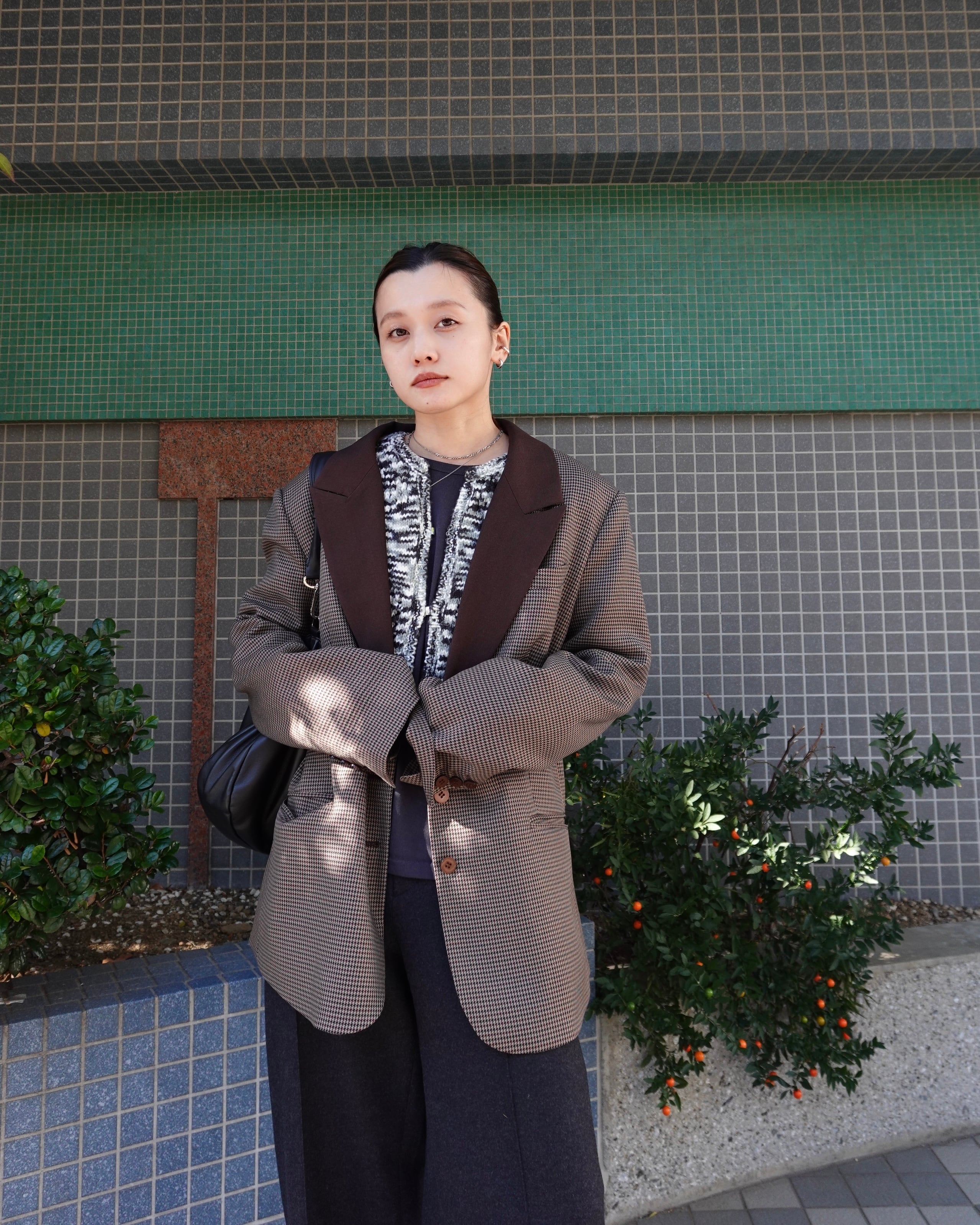 細かな千鳥柄が映えるオーバーサイズジャケット。