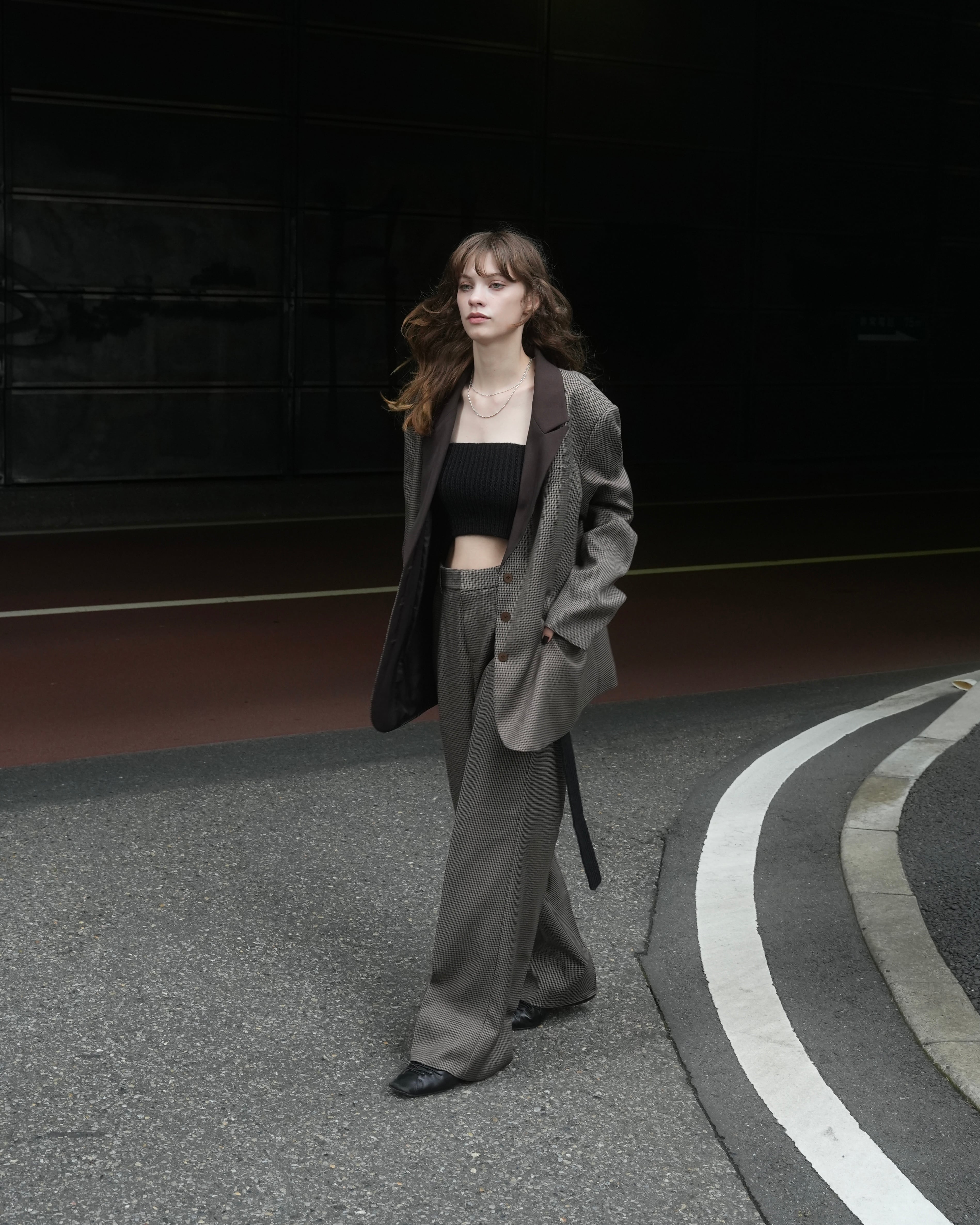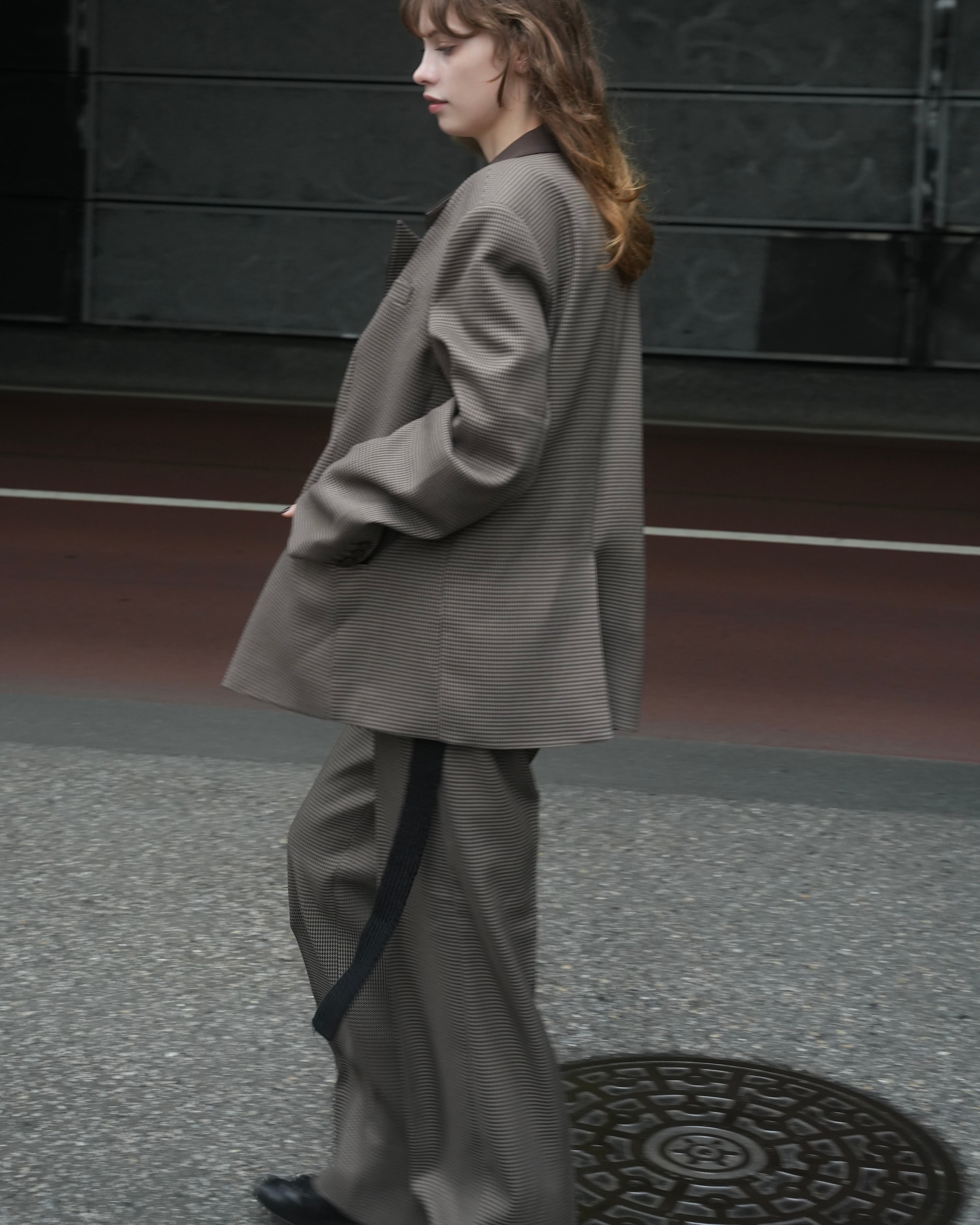 同素材のジャケットと合わせて、セットアップでの着こなしもおすすめです。