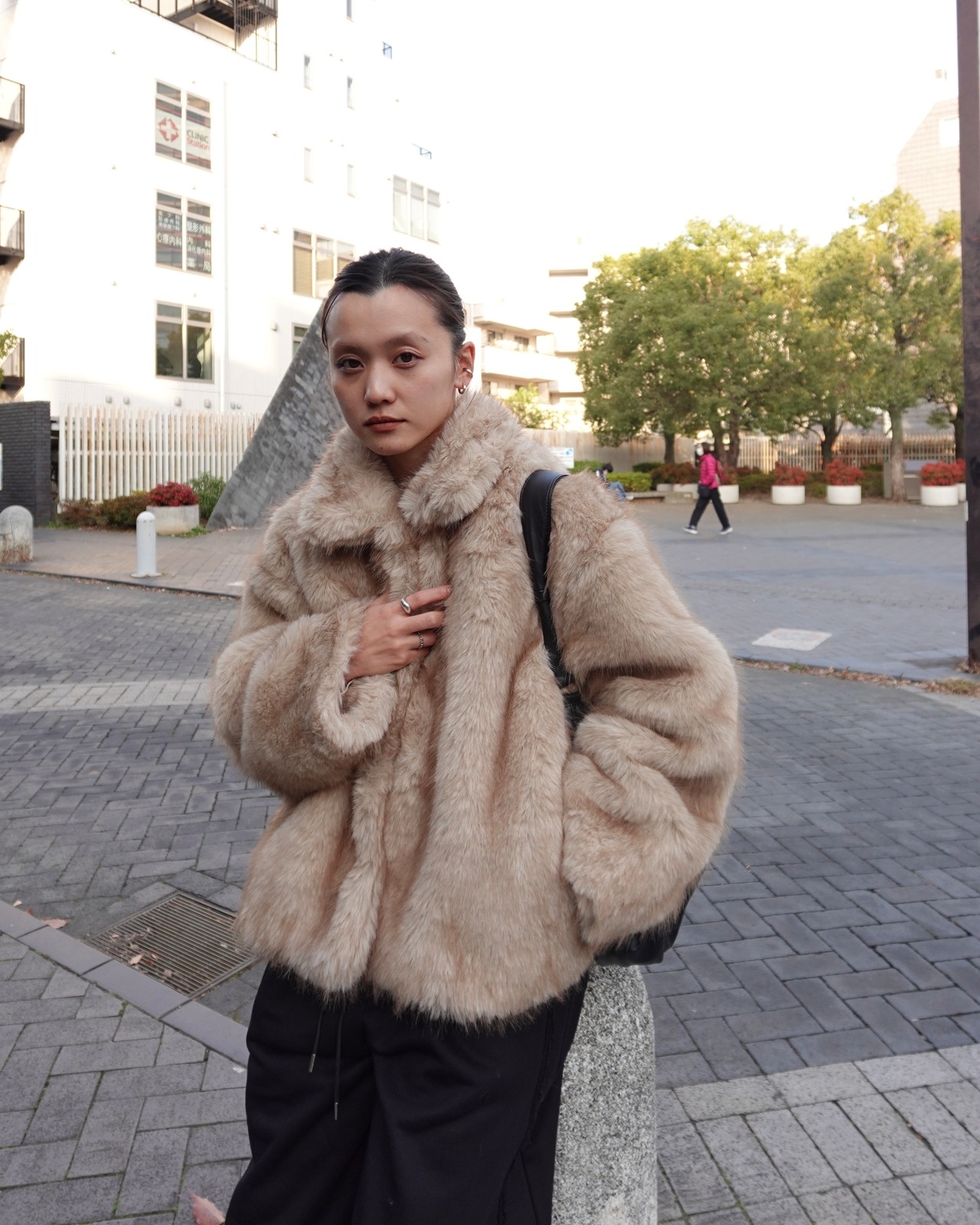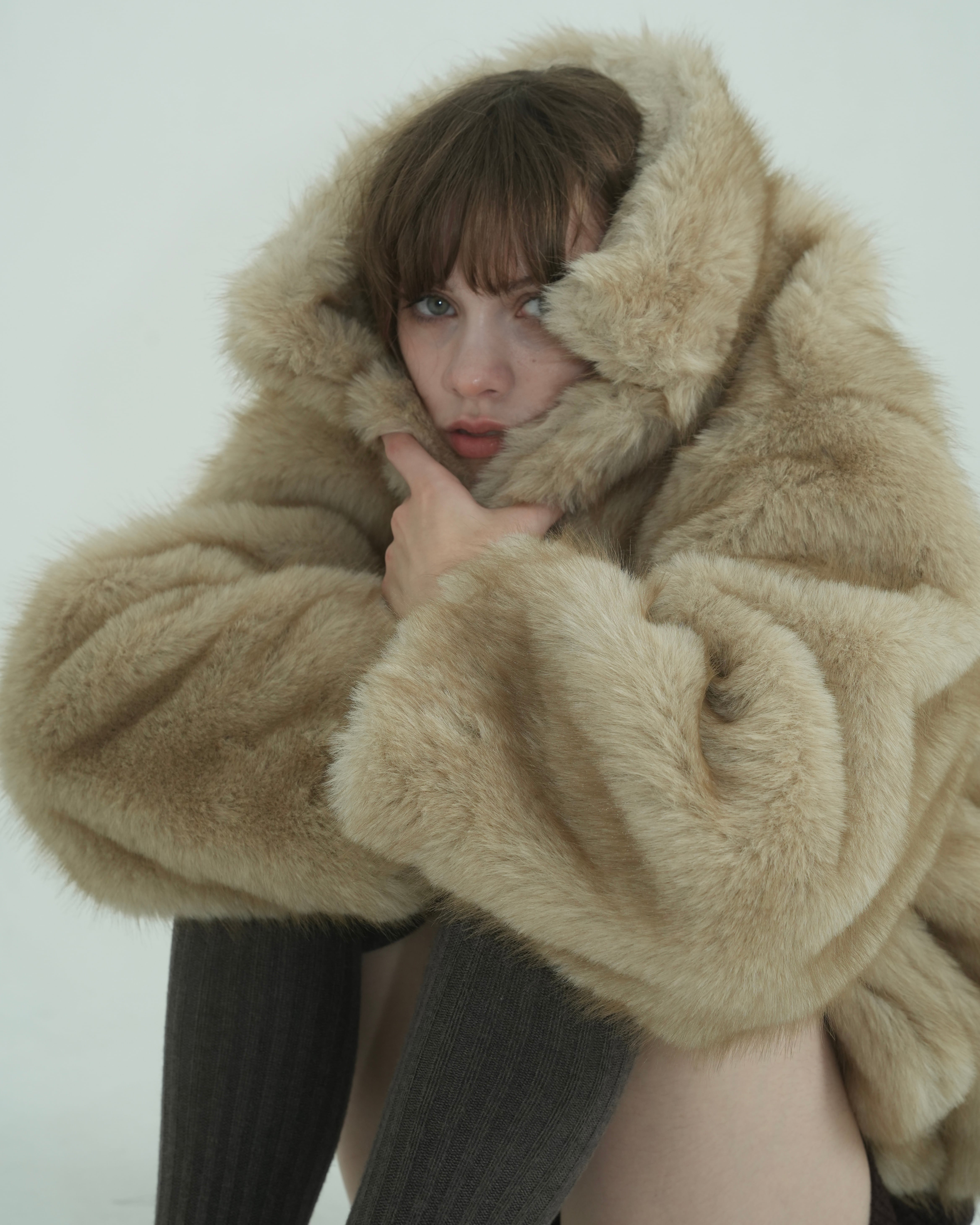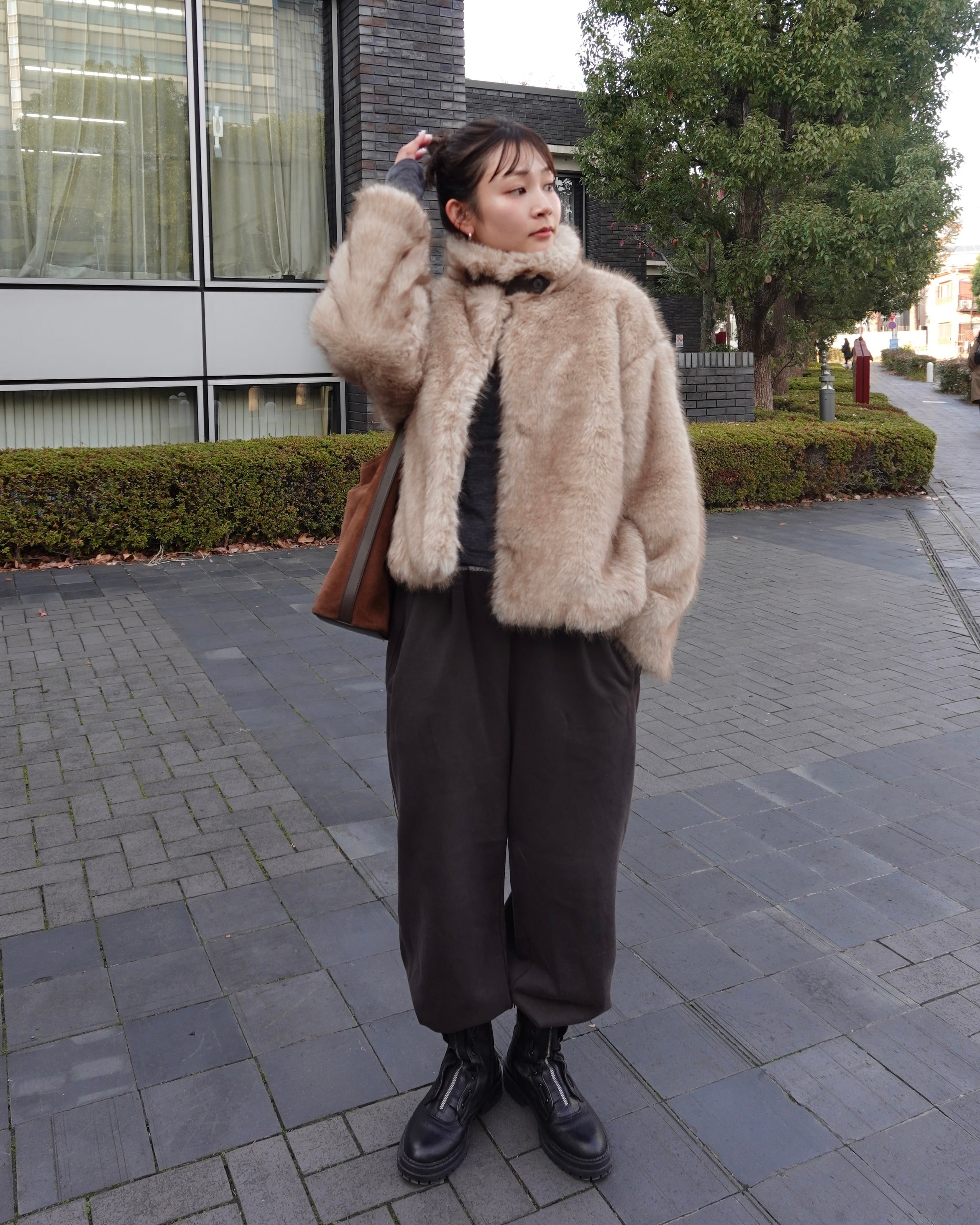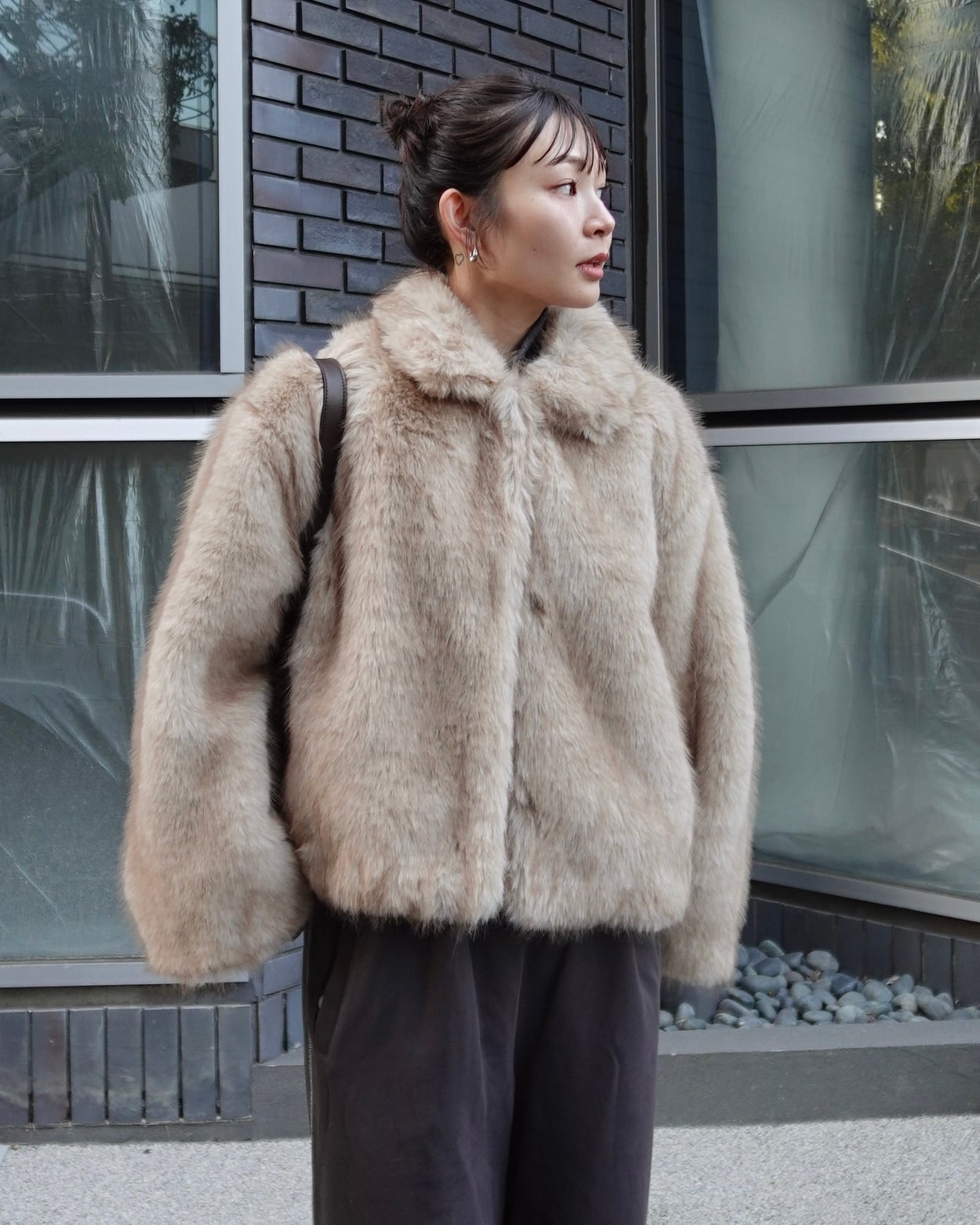 フロントはボタン式で、留め方次第でシルエットを自由にアレンジできます。ふわっと軽やかなファーは、ゆったりシルエットで中にも着込める暖かさ。