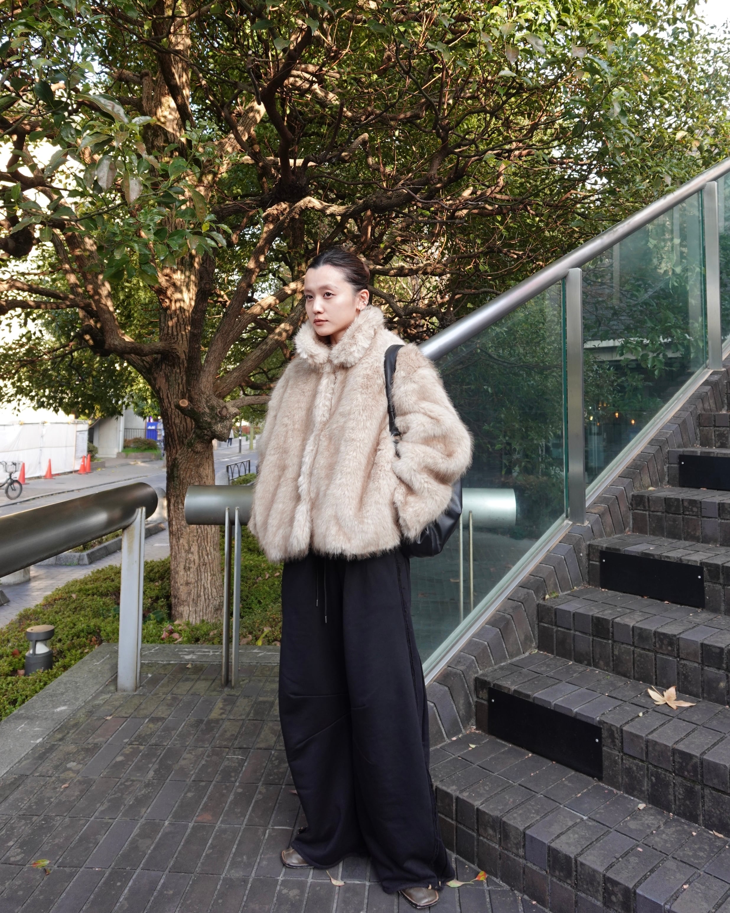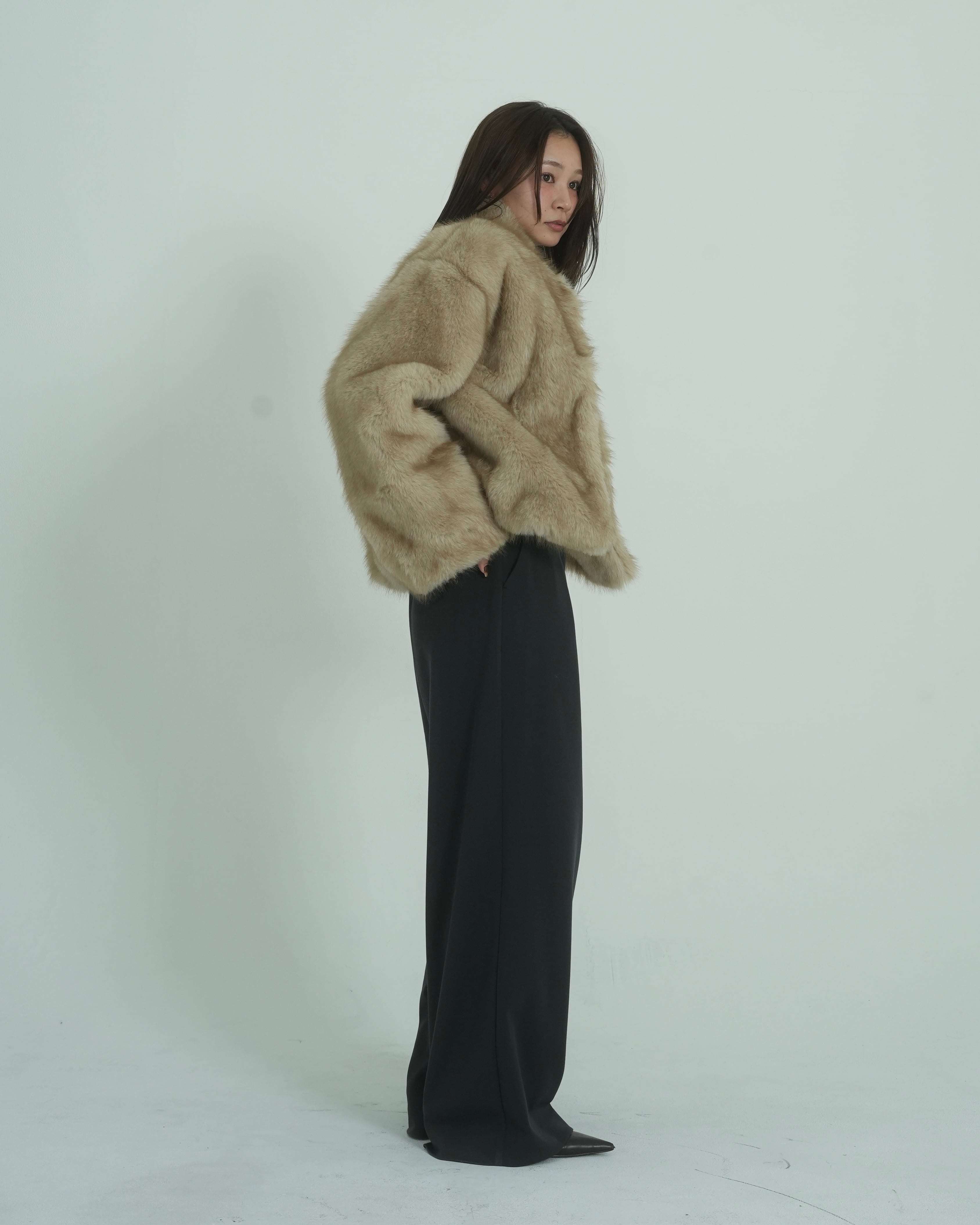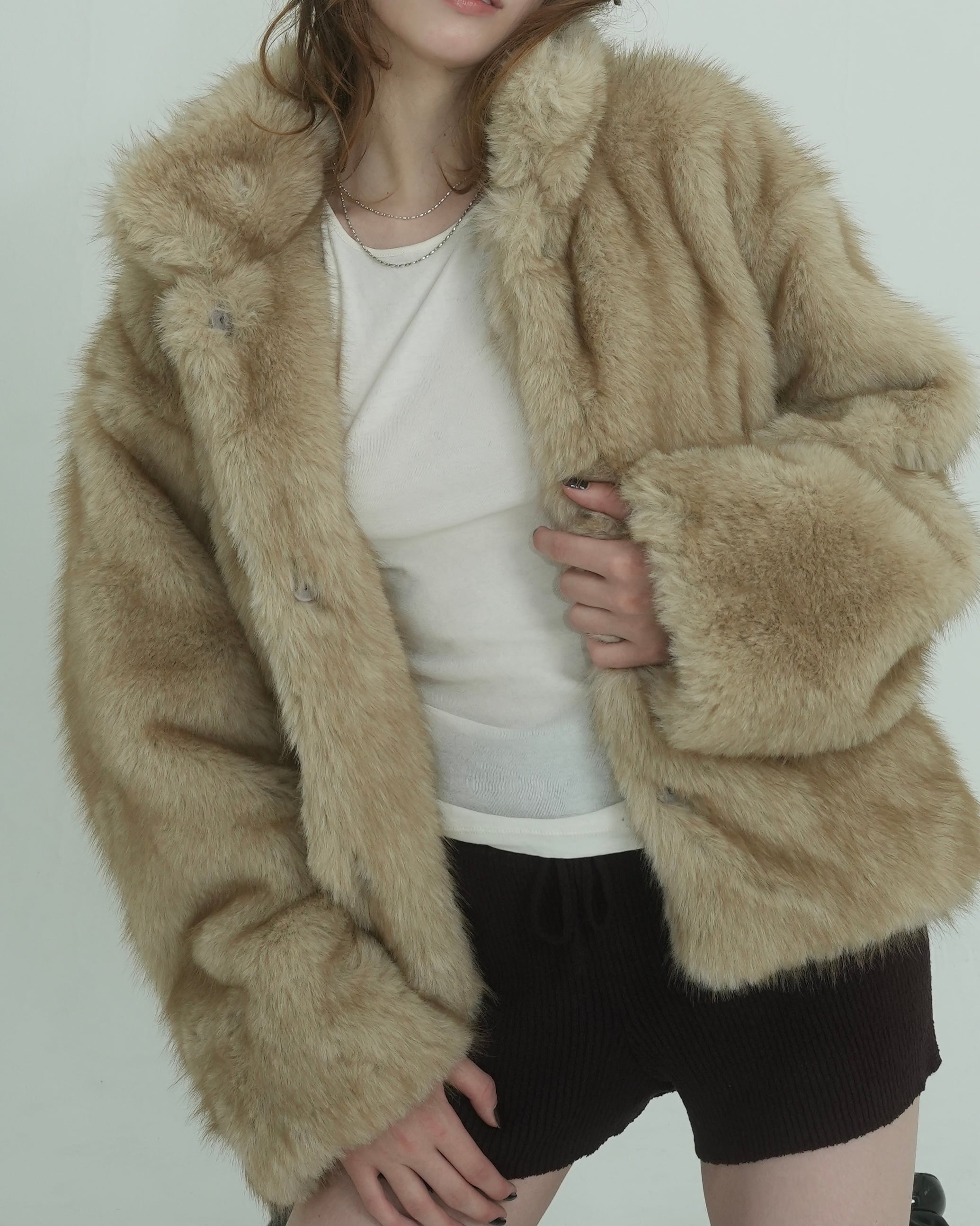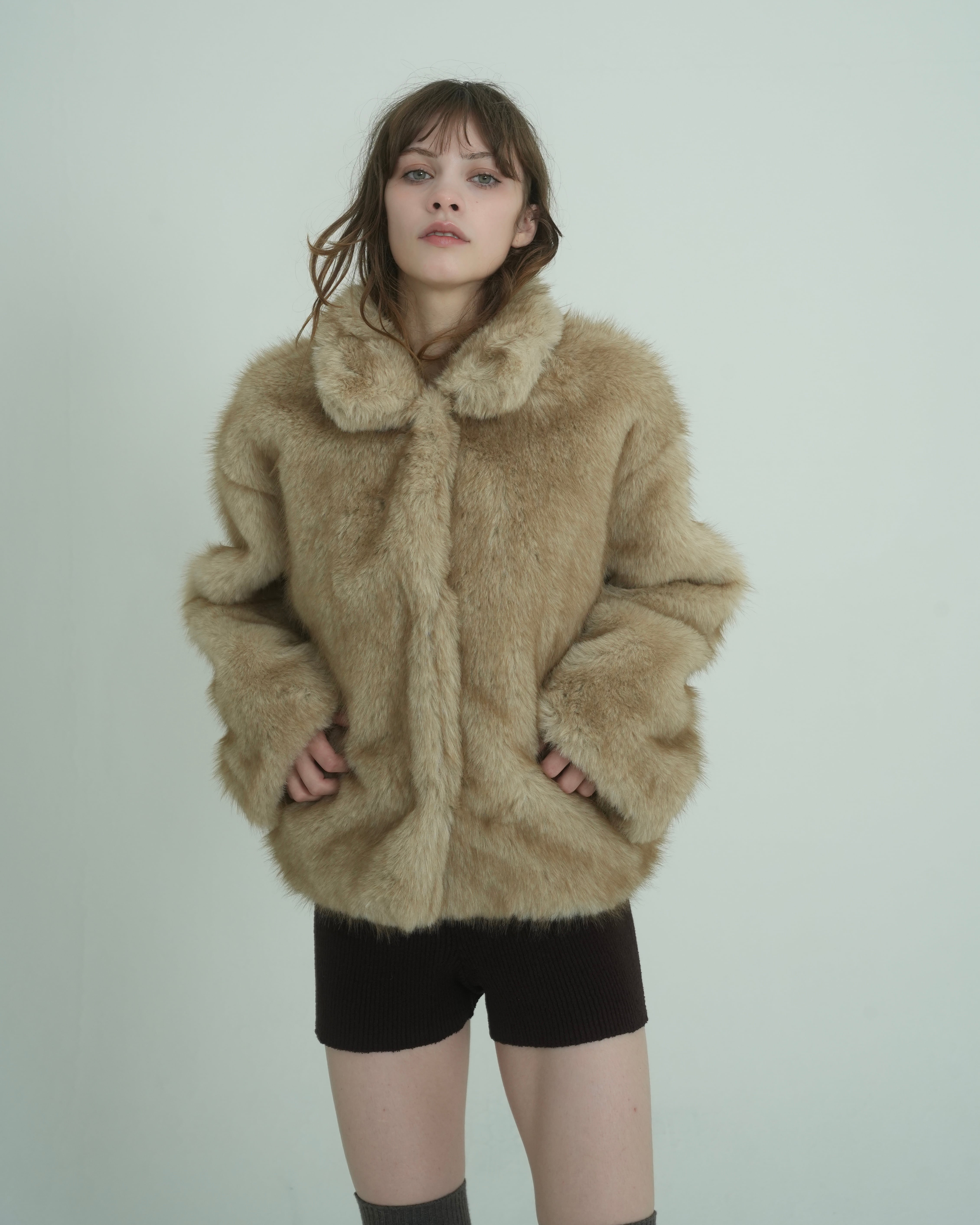 フロントはボタン式で、留め方次第でシルエットを自由にアレンジできます。ふわっと軽やかなファーは、ゆったりシルエットで中にも着込める暖かさ。