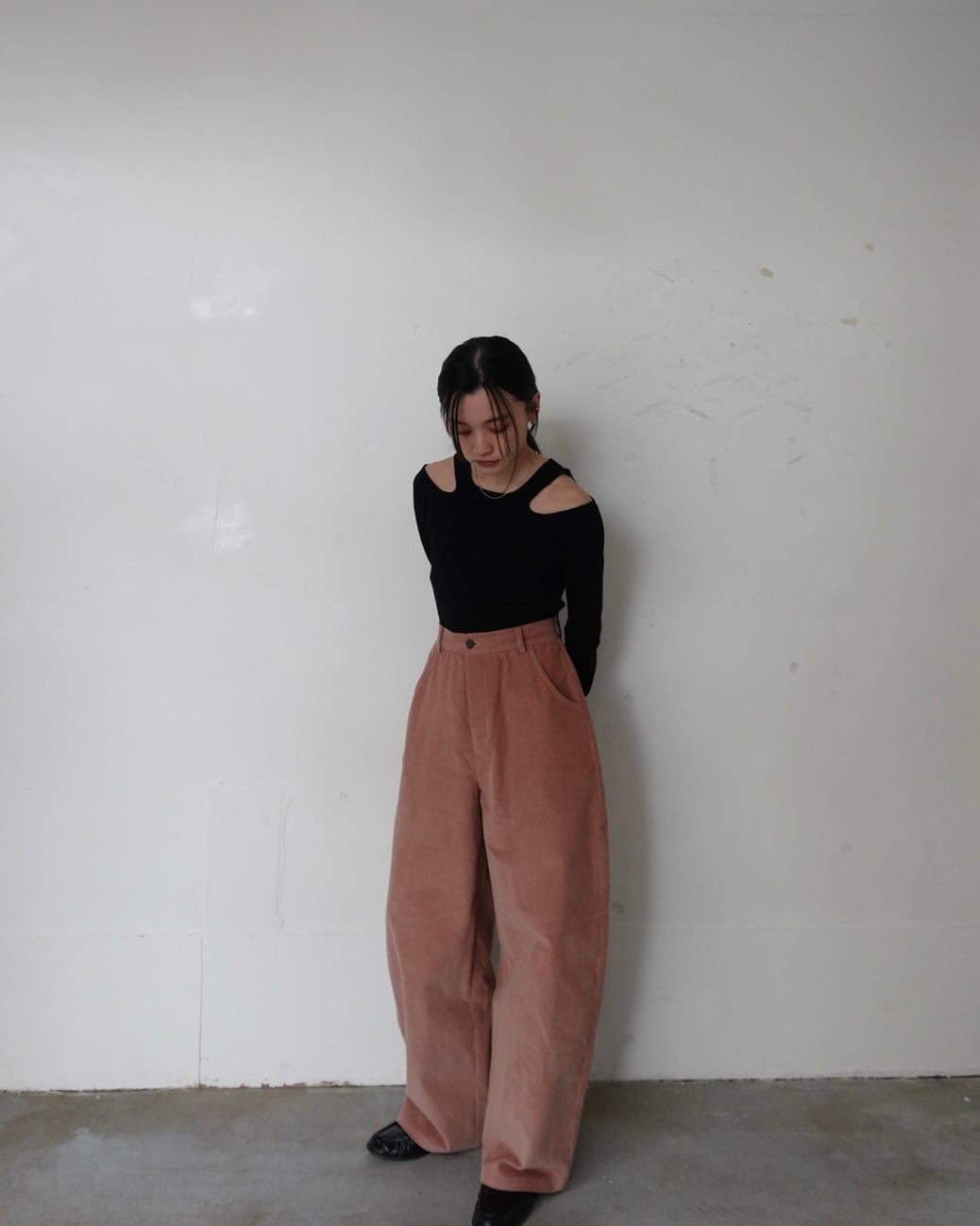 身体のラインをソフトに包み込む立体的なフォルムは、リラックスした穿き心地と洗練されたスタイルを両立します。