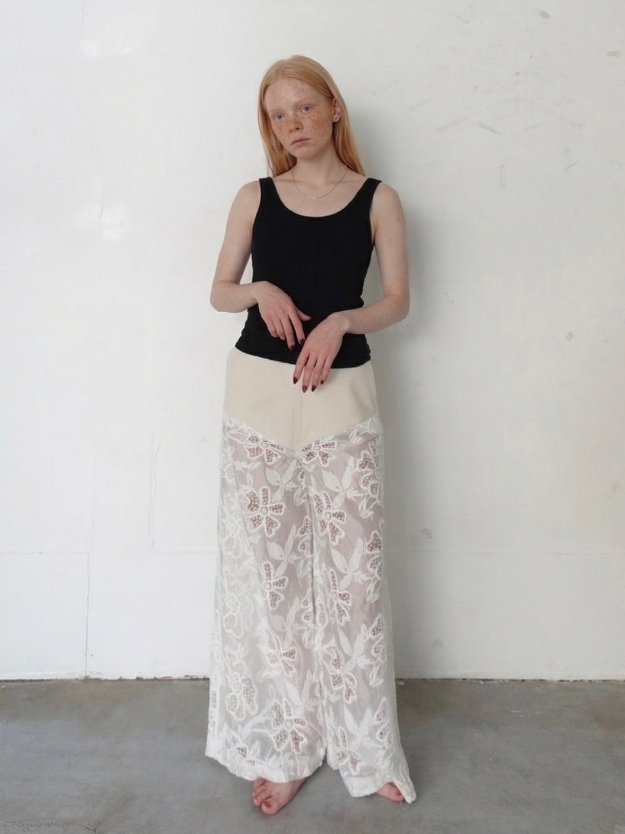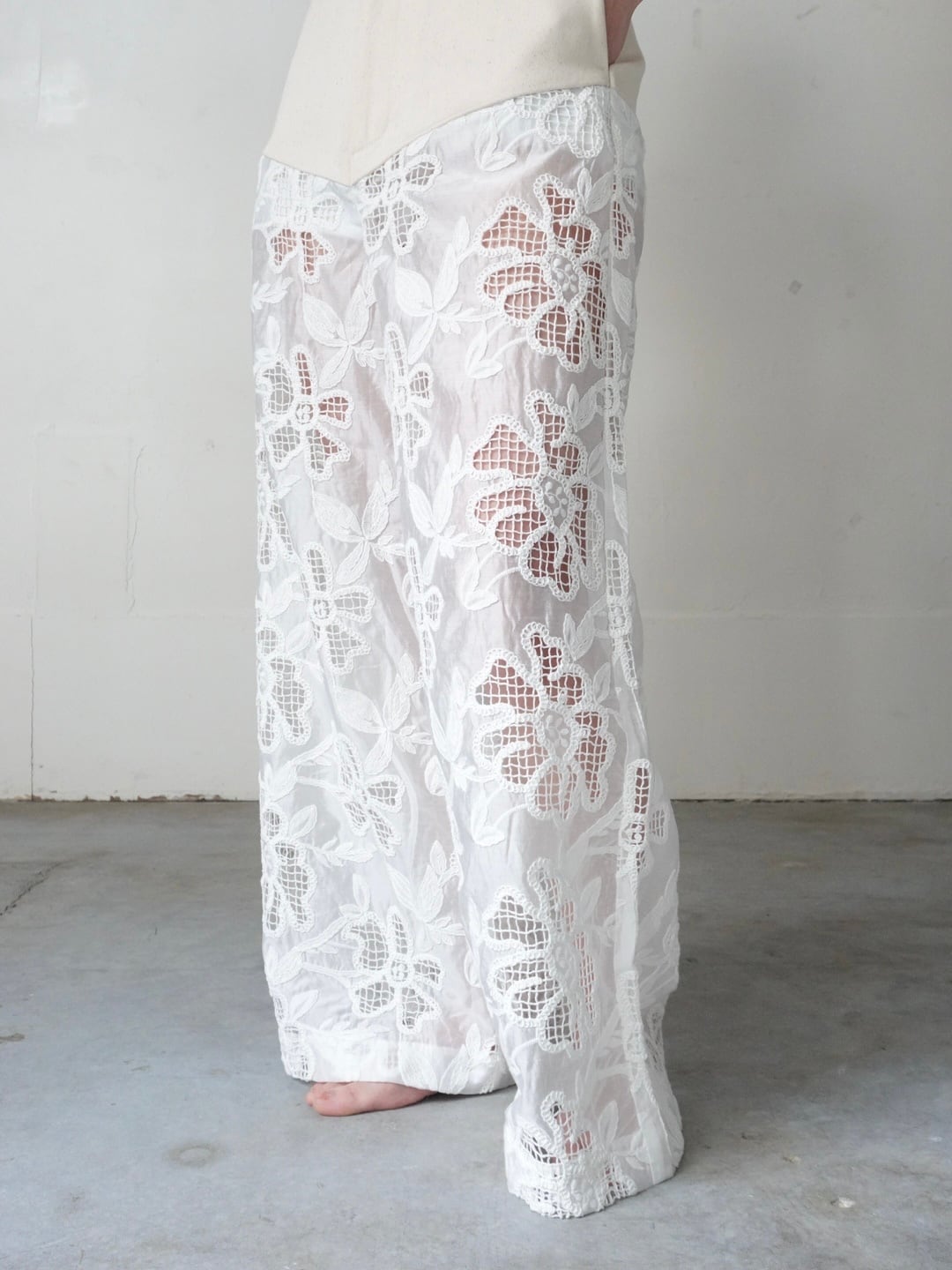 lace cotton wide pants