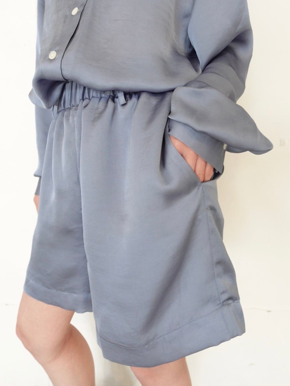 大人も取り入れやすい「satin easy short pants」