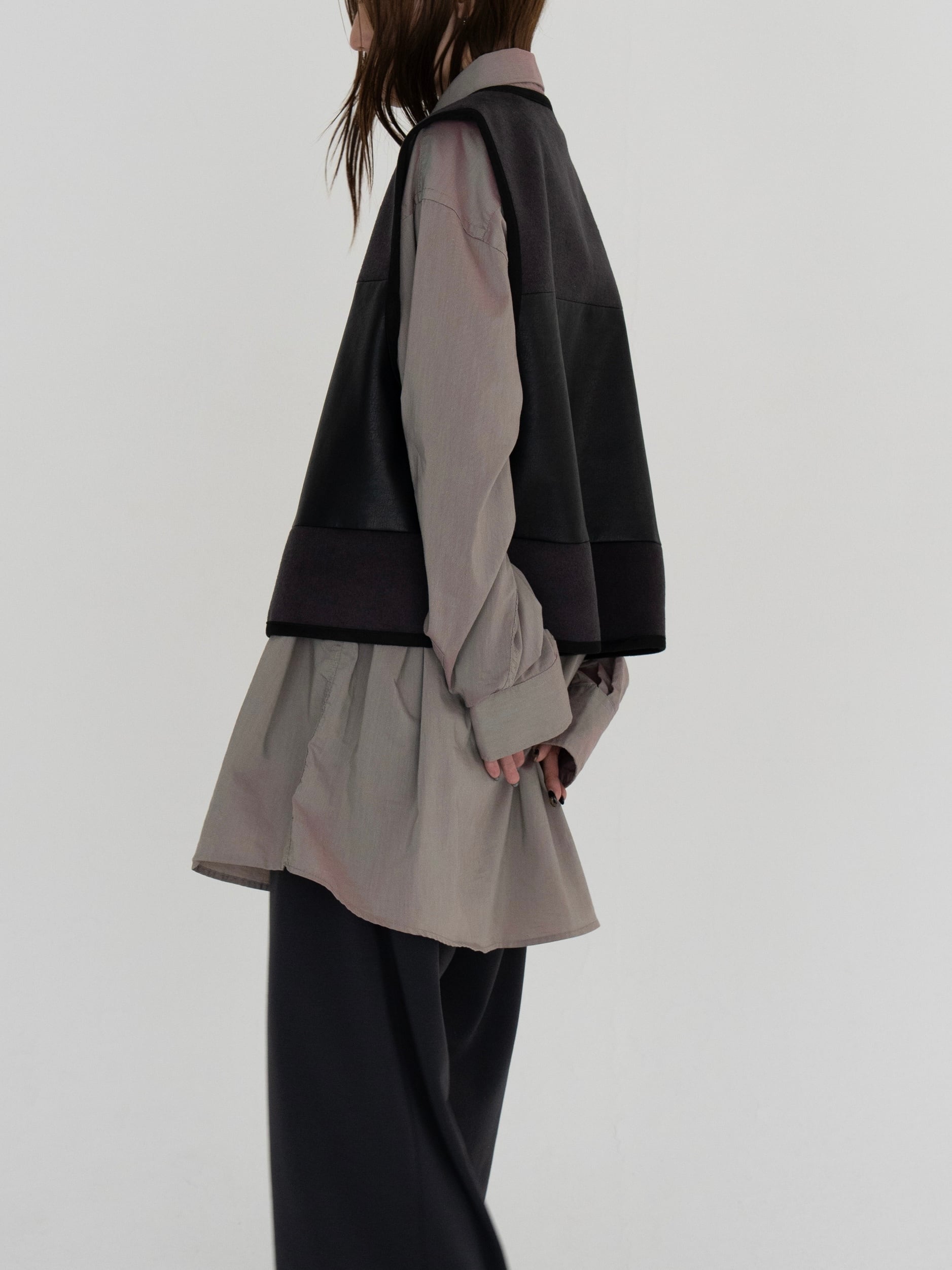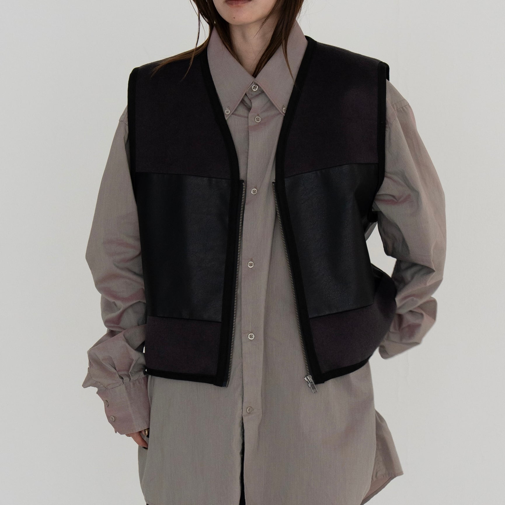 フェルトとフェイクレザーを組み合わせたパネルベスト。