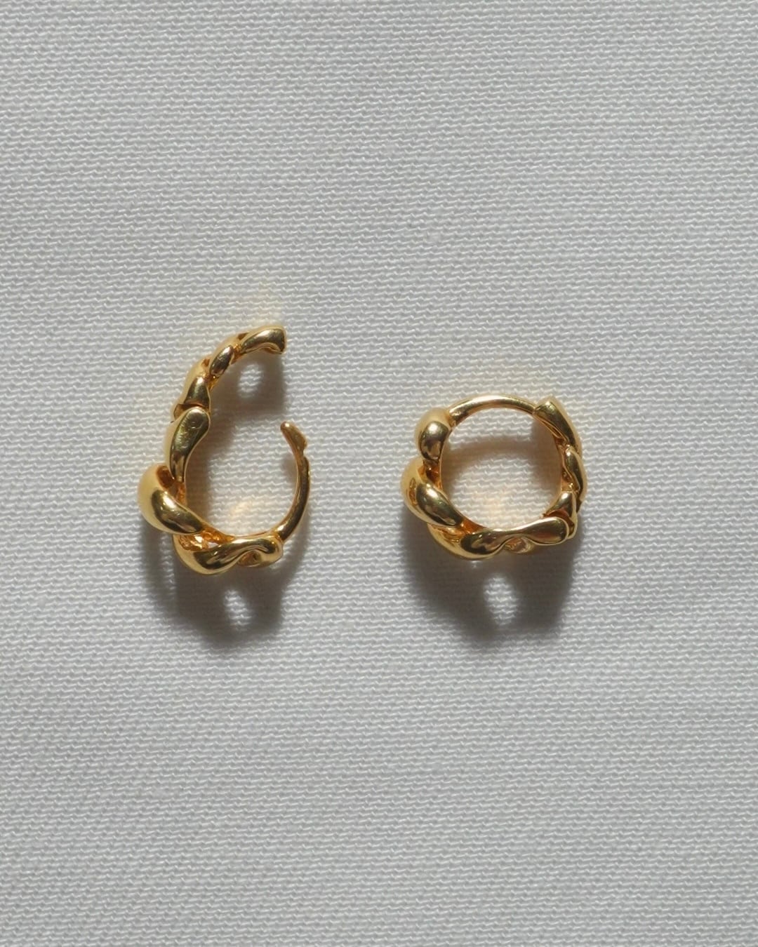 ひねりによる立体感が光を多角的に反射し、小ぶりながらも耳元でキラッとした存在感を放ちます。